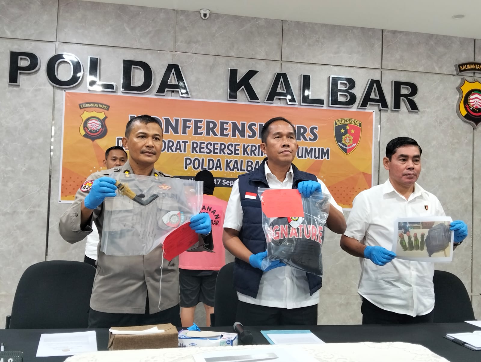 Konferensi pers dipimpin Direktur Reskrimum Polda Kalbar, Kombes Pol Raswin Bachtiar Sirait, S.H., S.I.K., M.Si., didampingi Kasubbid Penmas Bidhumas Polda Kalbar, AKBP Prinanto, serta Kasubdit Kamneg, Kompol Lely Suheri, S.H., M.M., dengan dihadiri awak media lokal dan nasional, Rabu (17/9/2025).