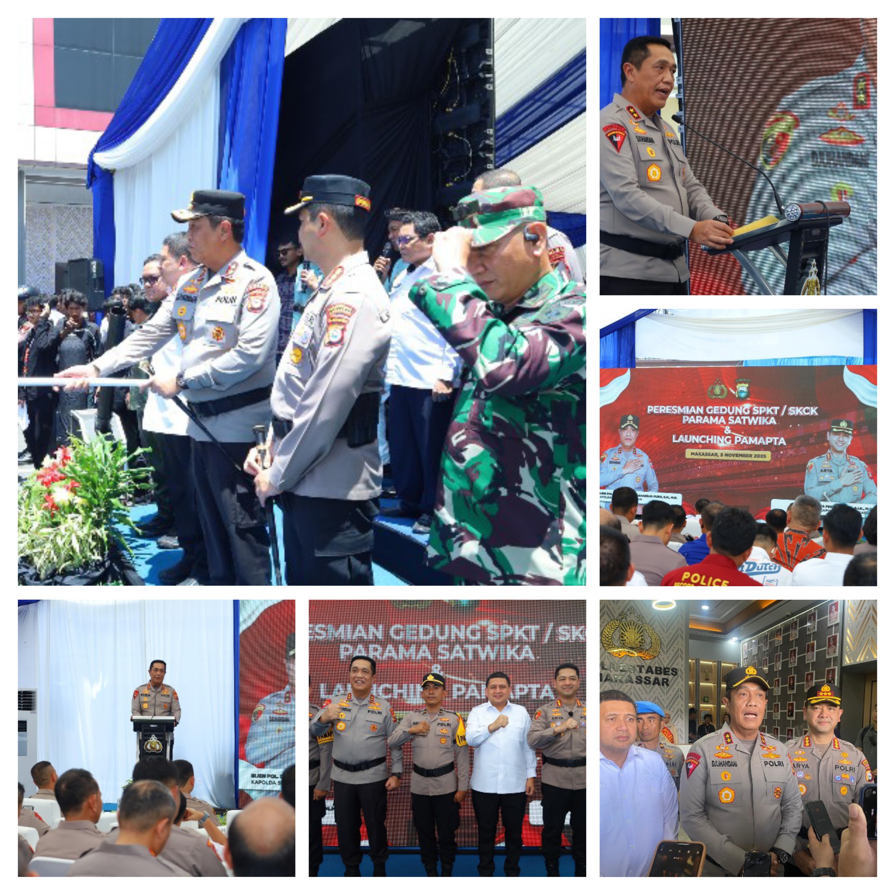 Kepolisian Daerah Sulawesi Selatan kembali menorehkan langkah konkret dalam meningkatkan kualitas pelayanan publik. Kapolda Sulawesi Selatan, Irjen Pol. Djuhandhani Rahardjo Puro, S.H., M.H., meresmikan Gedung SPKT dan SKCK “Parama Satwika” serta secara resmi meluncurkan Satuan Pamapta Polrestabes Makassar, bertempat di Mako Polrestabes Makassar, Rabu (5/11/2025).