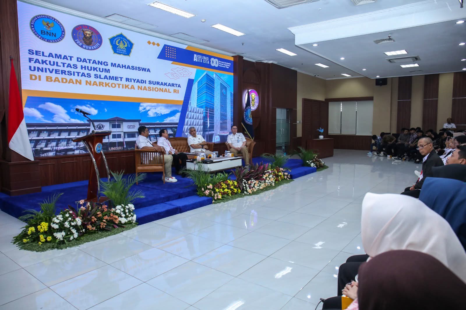 Mutiaraindotv.my.id – Kompleksitas permasalahan narkotika di Indonesia dijabarkan Deputi Hukum dan Kerja Sama (Hukker) BNN RI, Agus Irianto, saat menerima kunjungan mahasiswa Fakultas Hukum Universitas Slamet Riyadi Surakarta (UNSRI), pada Rabu (5/11), di Gedung BNN, Cawang, Jakarta Timur.