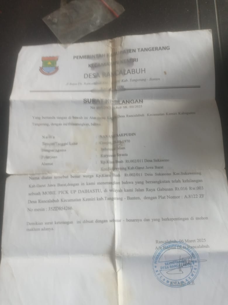 Setelah kami datang di TKP Kami mendampingi Nanang, saepudin untuk lapor Ke RT/RW/keluran setempat dan untuk surat laporan dari keluraha atas nama Nanang Saepudin, pun ada dan Kami Berdua hanya mendampingi Nanang, dan di kasih arahan untuk langsung lapor ke Polsek Mauk. setelah datang di Polsek Mauk, tidak bisa laporan dulu, harus tunggu 1X24 jam baru bisa laporan kata yang di Polsek Mauk