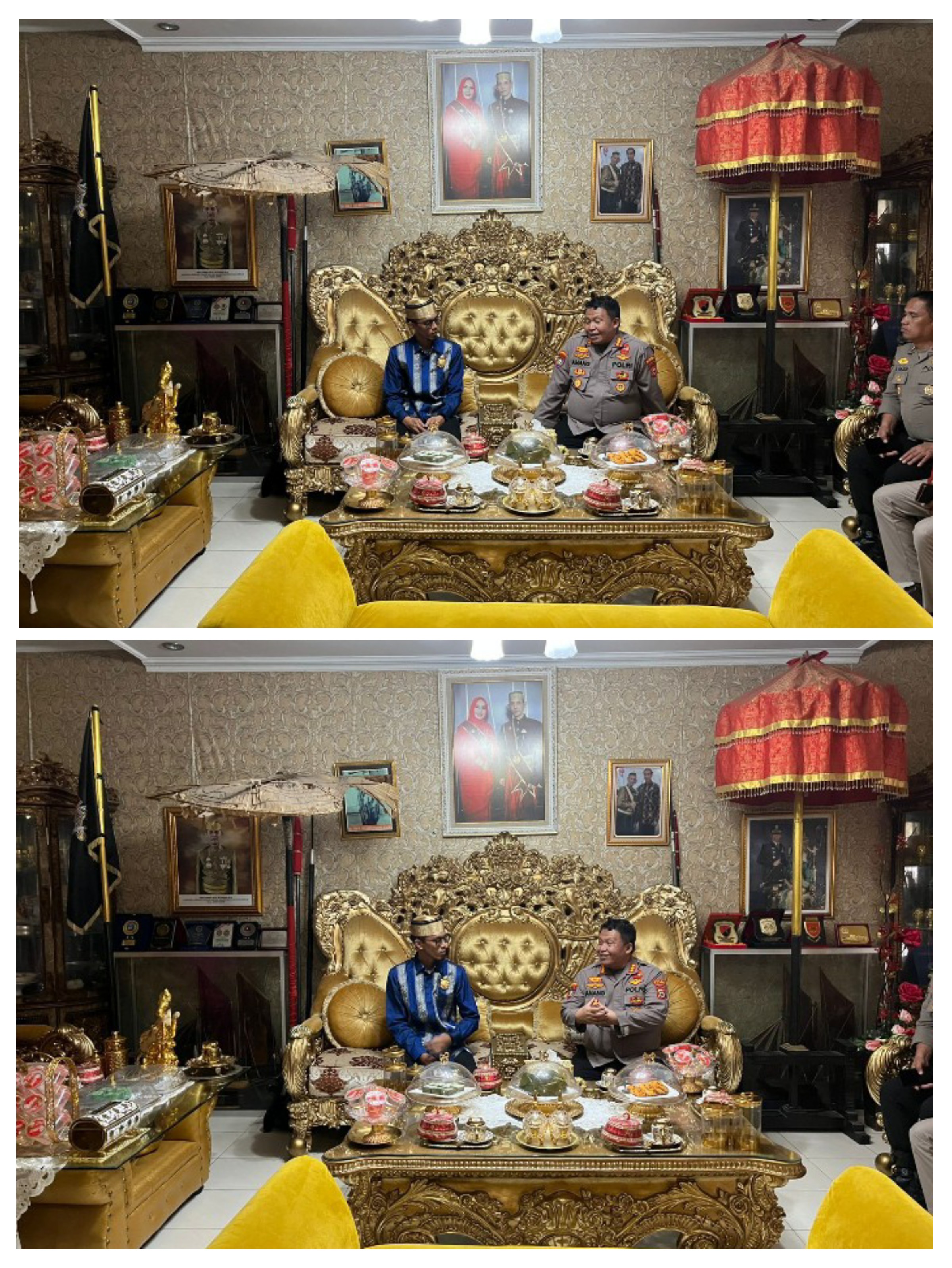 GOWA,- Dirbinmas polda sulsel Kombespol anang triarsono, S.IK.,M.Si menyambangi kediaman Raja Gowa Putra Mahkota ( Pati Mataranna Kerajaan Gowa) YM Andi Muhammad Imam Dg Situju Bin Andi Kumala Idjo Dg Sila Karaeng Lembang Parang Sultan Malikussaid II Batara Gowa, Senin (10/11/2025).