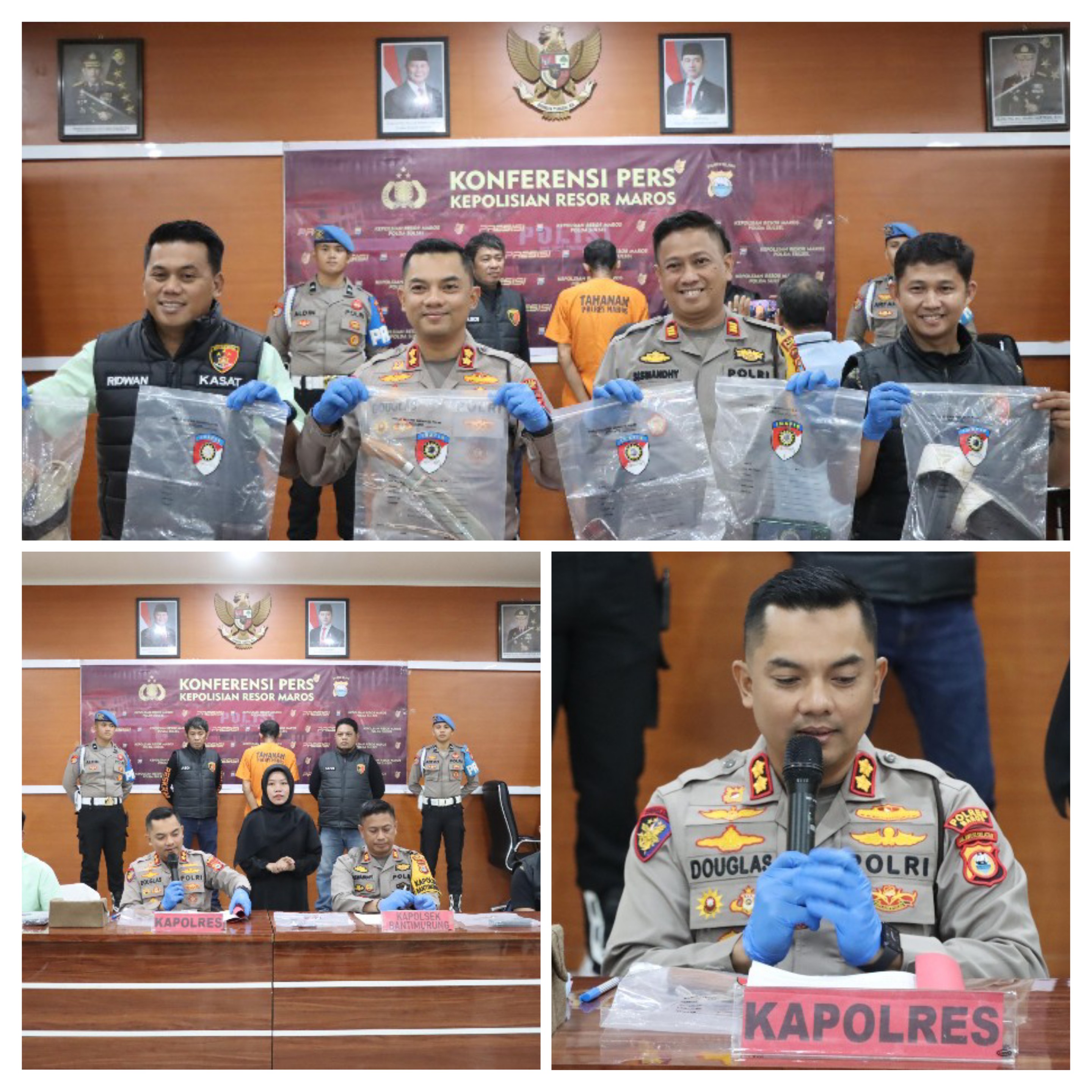 Maros – Kepolisian Resor (Polres) Maros menggelar konferensi pers terkait pengungkapan kasus tindak pidana pembunuhan yang dilakukan oleh seorang pria terhadap kekasihnya sendiri. Kegiatan tersebut dilaksanakan di Aula Mapolres Maros pada Kamis (13/11/2025) dan dipimpin langsung oleh Kapolres Maros AKBP Douglas Mahendrajaya, S.H., S.I.K., M.I.K., M.Tr.Opsla, didampingi Kasat Reskrim IPTU Ridwan, S.H., M.H., Kapolsek Bantimurung AKP Siswandhy, S.Sos, serta Kanit Reskrim Polsek Bantimurung IPDA Franky Aris, S.H., M.H.