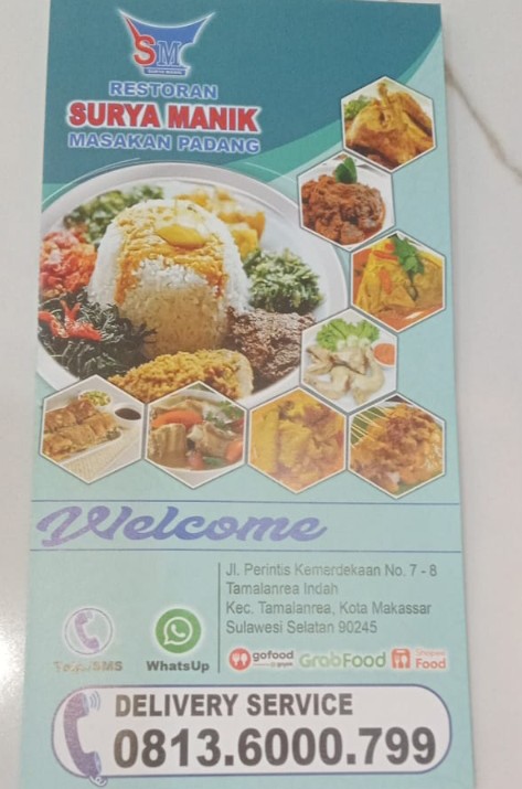 Untuk kemudahan pelayanan, Surya Manik juga menyediakan layanan Delivery Service yang dapat dihubungi melalui nomor 0813-6000-799.Dengan diresmikannya Surya Manik di Jalan Urip Sumoharjo, masyarakat Makassar kini memiliki satu lagi pilihan tempat makan yang menghadirkan kenyamanan, kualitas rasa, serta pelayanan terbaik.