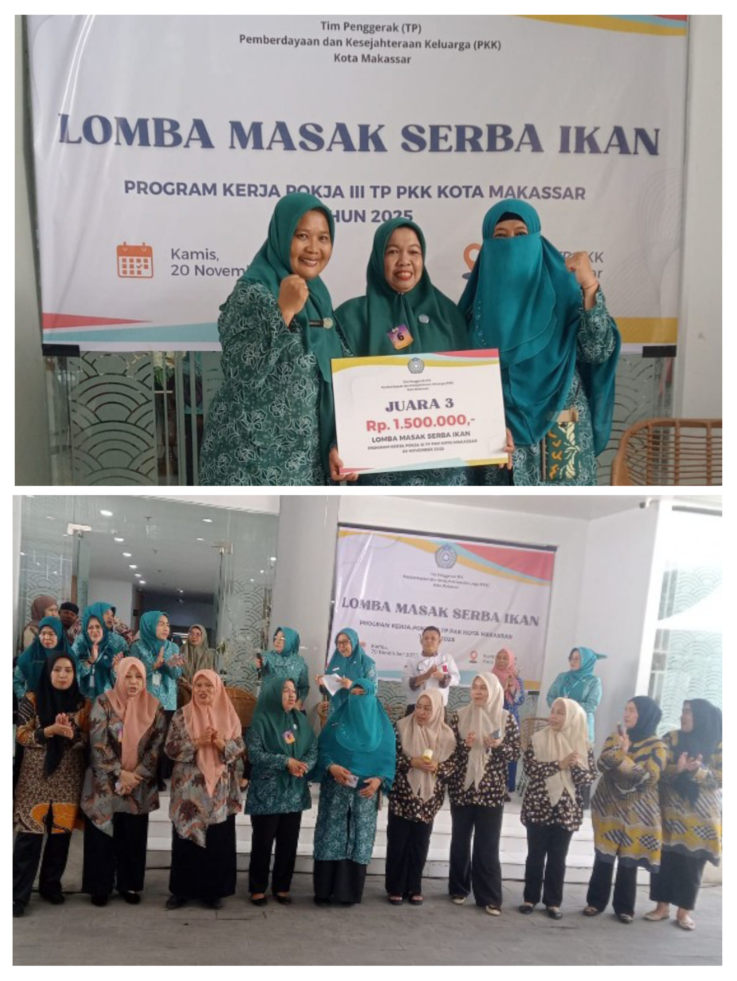 Makassar, 20 November 2025 — Tim Penggerak Pemberdayaan dan Kesejahteraan Keluarga (TP-PKK) Kota Makassar melalui Pokja III kembali menggelar Lomba Masak Serba Ikan sebagai bagian dari Program Kerja Tahun 2025. Kegiatan berlangsung meriah pada Kamis, 20 November 2025, bertempat di Kantor TP-PKK Kota Makassar, Jalan Thamrin.