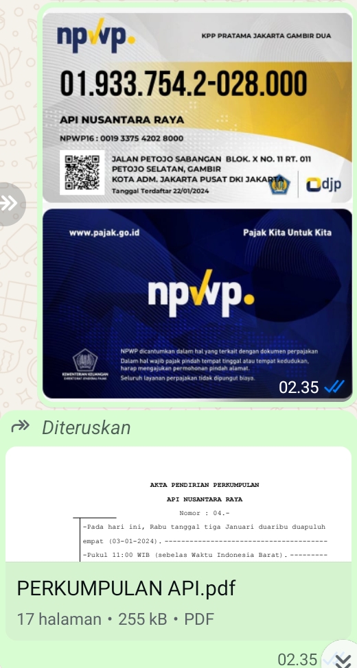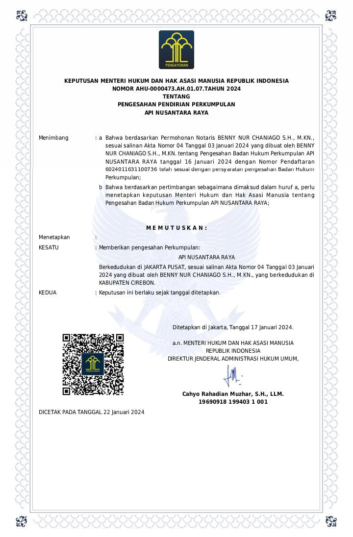 Dokumen Resmi: Bukti fisiknya adalah Akta Pendirian yang telah di notariskan dan disahkan oleh Kemenkumham, serta memiliki nomor pengesahan AHU (contoh: AHU-000…).