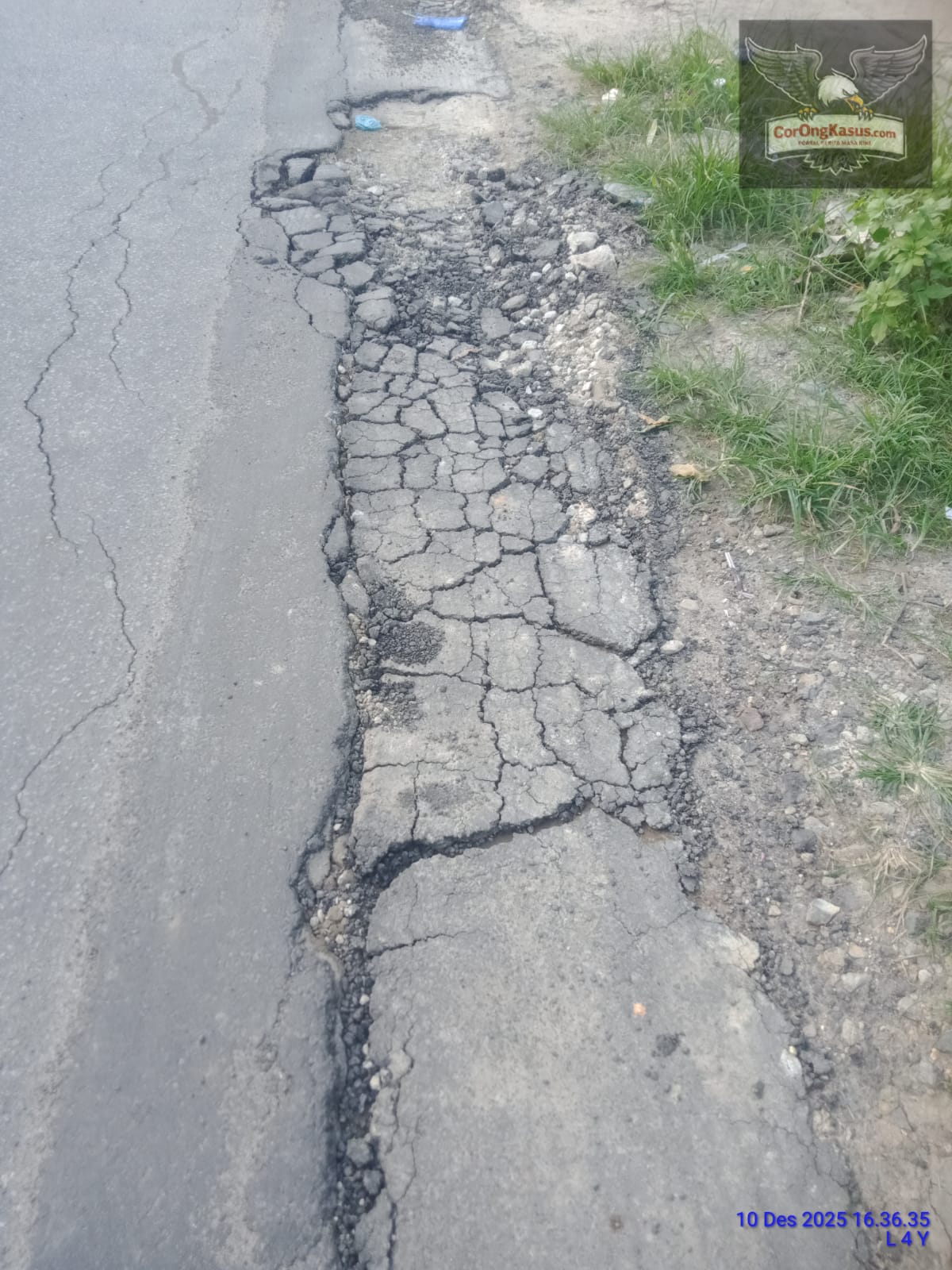Dari hasil pantauan langsung di lapangan, pekerjaan backfilling dan finishing terlihat tidak maksimal. Tanah urukan tampak tidak dipadatkan secara optimal, permukaan jalan tidak rata, aspal bergelombang, dan di beberapa titik telah mengalami kerusakan kembali meski pekerjaan belum lama diselesaikan.