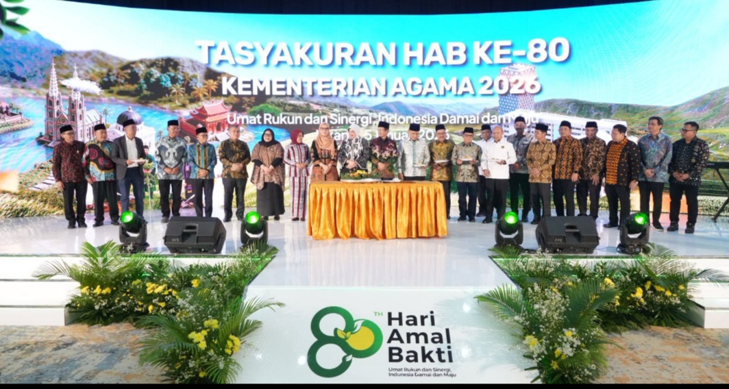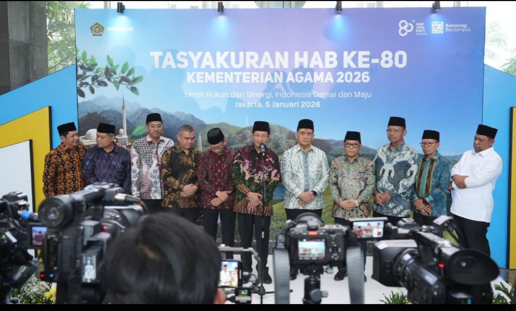 Jakarta — Kementerian Agama Republik Indonesia menggelar Tasyakuran Hari Amal Bakti (HAB) ke-80 Tahun 2026 dengan mengusung tema “Umat Rukun dan Sinergi, Indonesia Damai dan Maju”. Acara berlangsung di Auditorium HM Rasjidi, Kantor Kementerian Agama RI, Jakarta, Senin (5/1/2026).