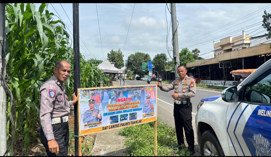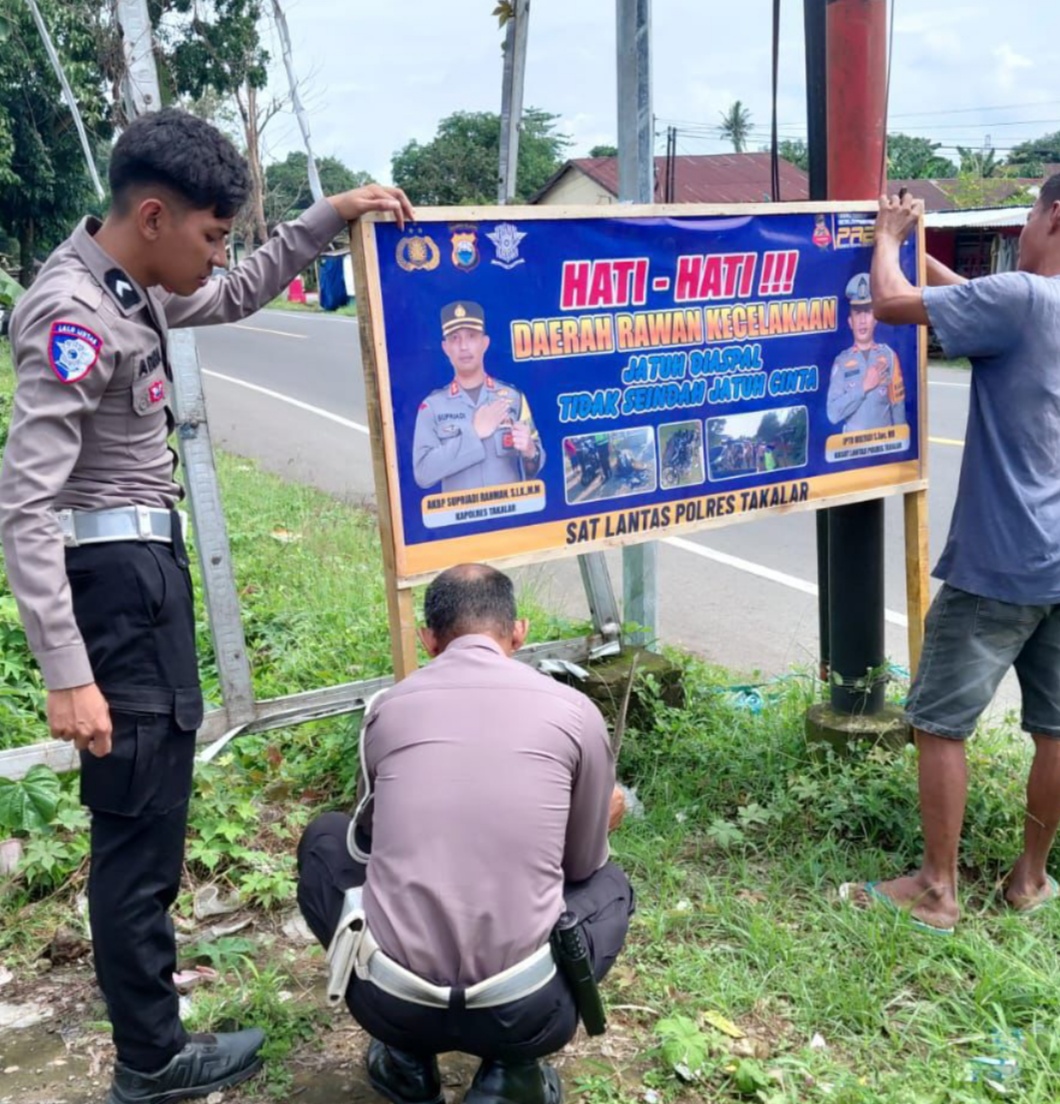Takalar – Guna menumbuhkan kesadaran masyarakat terhadap pentingnya keselamatan berlalu lintas, Unit Keamanan dan Keselamatan (Kamsel) Satuan Lalu Lintas Polres Takalar melaksanakan kegiatan pemasangan spanduk imbauan keselamatan berkendara, Senin (5/1/2026).
