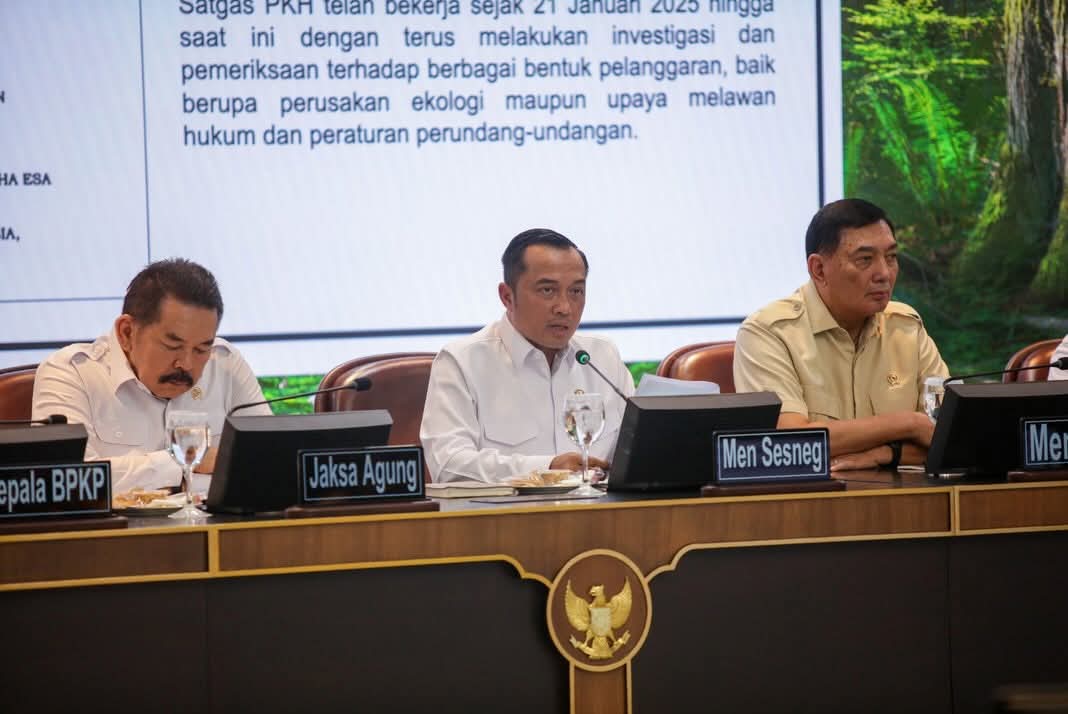 Mensesneg menjelaskan bahwa dua bulan setelah dilantik, Presiden Prabowo telah menerbitkan Perpres 5/2025 tentang pembentukan Satuan Tugas Penertiban Kawasan Hutan (Satgas PKH). Satgas tersebut bertugas melakukan audit dan pemeriksaan dalam rangka penertiban berbagai usaha berbasis sumber daya alam, mulai dari kehutanan, perkebunan, hingga pertambangan.