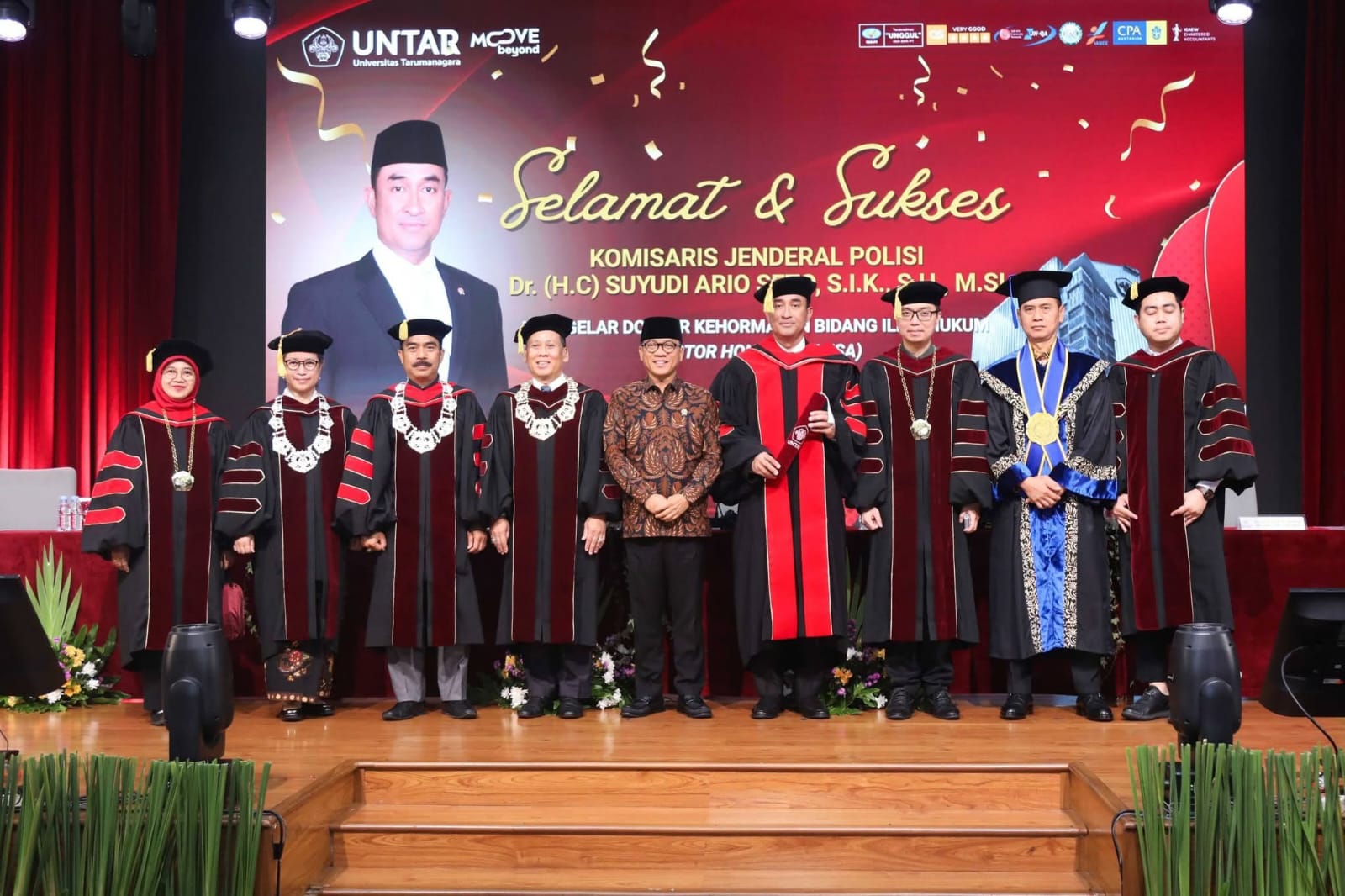 MutiaraindoTv.My.Id- Sidang terbuka Senat Universitas Tarumanagara yang digelar pada Sabtu (31/1), di Auditorium Universitas Tarumanagara, Jakarta Barat, secara resmi mengukuhkan Kepala BNN RI, Komjen Pol Suyudi Ario Seto, S.I.K., S.H., M.Si., dalam gelar Doktor Kehormatan (Doctor Honoris Causa) Bidang Ilmu Hukum.