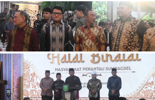 Mutiaraindotv.my.id Palembang — Ketua DPRD Provinsi Lampung Ahmad Giri Akbar, S.E., M.B.A., bersama Gubernur Lampung Rahmat Mirzani Djausal, S.T., M.M., serta Anggota DPRD Provinsi Lampung, menghadiri kegiatan Halal Bihalal Masyarakat Perantau Sumatera Bagian Selatan (Sumbagsel) yang digelar di Griya Agung, Palembang. Turut hadir mendampingi Sekretaris Daerah Provinsi Lampung Dr. Marindo Kurniawan, S.T., M.M., dan Sekretaris DPRD Provinsi Lampung Desca Tama Paksi Moeda, S.T., S.E., M.M., Sabtu (25/4/2026).