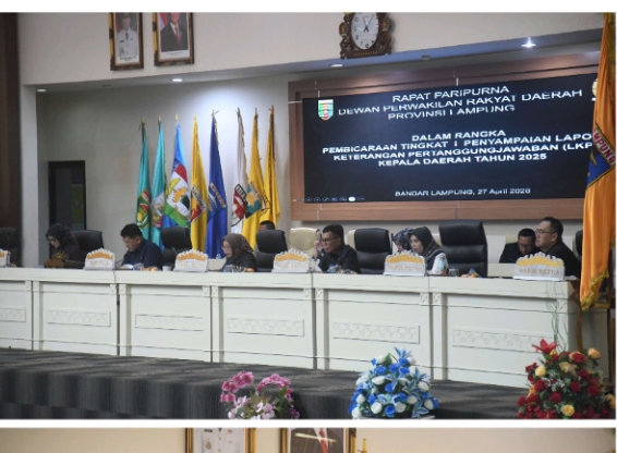 Mutiaraindotv.my.id Bandar Lampung — Dewan Perwakilan Rakyat Daerah (DPRD) Provinsi Lampung membentuk Panitia Khusus (Pansus) Pembahasan Laporan Keterangan Pertanggungjawaban (LKPJ) Kepala Daerah Tahun 2025 dalam Rapat Paripurna yang digelar di Ruang Sidang DPRD Provinsi Lampung, Senin (27/4/2026).